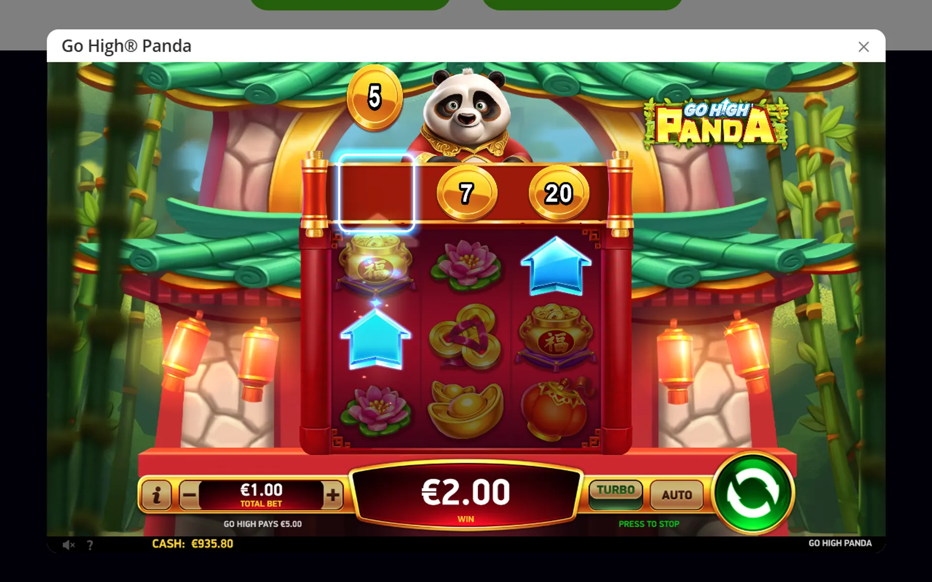Em alguns cassinos, como a Superbet, o Go High Panda é um slot de 10 centavos a aposta mínima.