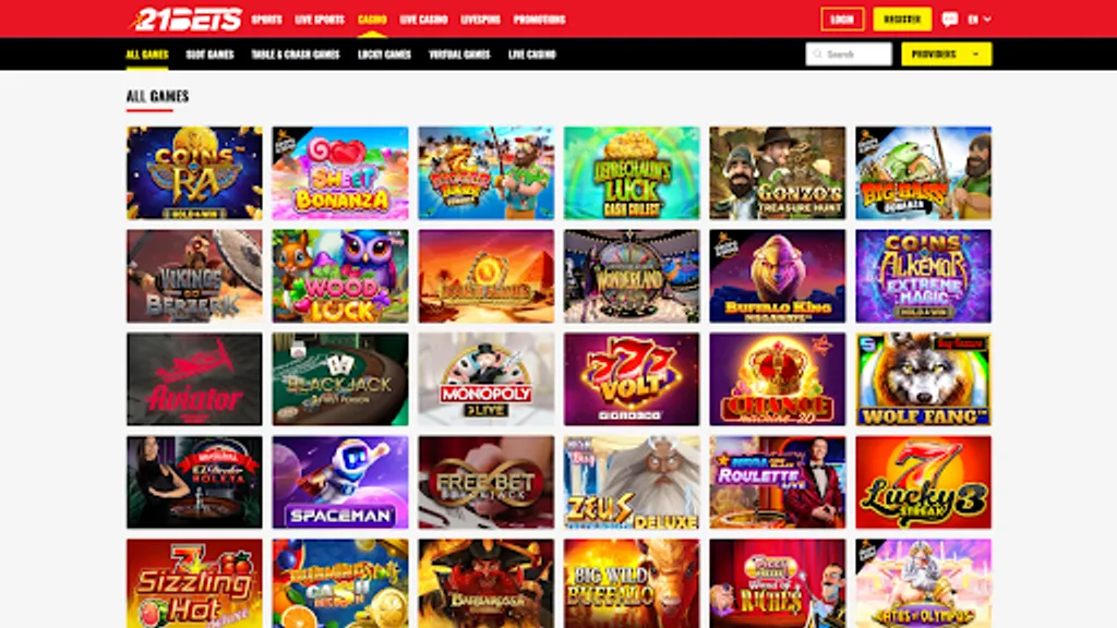 21Bets offers a decent selection of casino games from providers such as Pragmatic, Playtech and Yggdrasil.